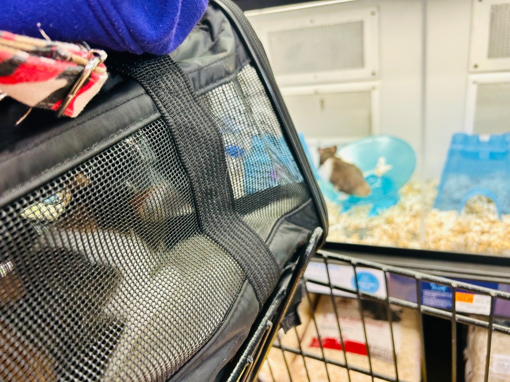 Iโm bringing her to see all the โtreatsโโฆ (the rodents in cages) while Target (Silvia) surveys potential prey for future operations ๐ญ
