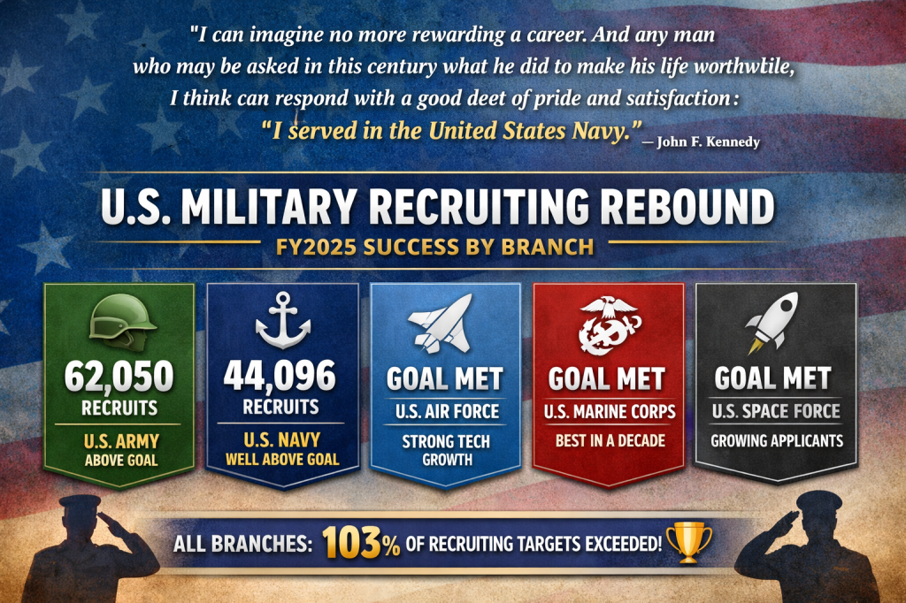Overall: All branches combined reached ~103% of recruiting targets ๐, marking some of the strongest numbers in over a decade.